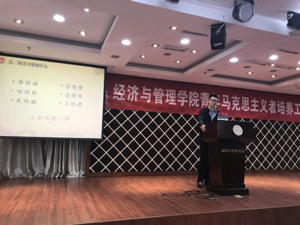 10月15日下午,经济与管理学院基层团组织学生骨干理论在学院A0305报告厅顺利举办,校团委副书记董羽、学院团委书记庞依达、各年级辅导员和150余名2017、2018级团学骨干们共同参加了此次辅导。