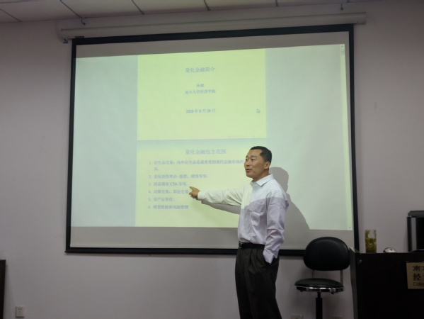 2018年10月19日下午,复旦大学经济学院教授、金融量化金融中心主任孙健教授应经济与管理学院邀请,在经管院702室做了一场题为“量化金融交易”的精彩报告。经济与管理学院刘益平教授主持了本场报告会,学院马珩教授、仇冬芳副教授、李宝宝副教授等学院多名教师及众多硕博士现场听取了报告,现场座无虚席。
