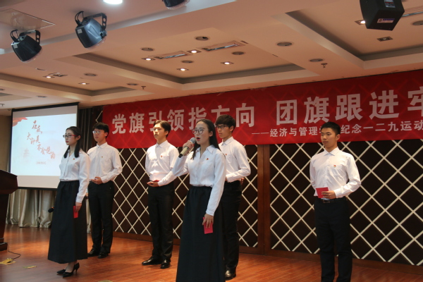 12月7日晚,经济与管理学院“党旗引领指方向,团旗跟进牢铸魂”纪念“一二·九”运动主题素养公开课在学院A0305报告厅成功举办。学院党委书记焦宏图、经济系教授江可申、校团委副书记董羽、学院团委书记庞依达、各年级辅导员和各级团学骨干近两百人共同参加了此次活动。