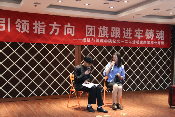 经济与管理学院始终坚持重视大学生理想信念教育,本次公开课是经管团学响应上级团组织开展信仰公开课的号召,表达了经管青年对“一二·九”运动精神的纪念与敬意,继承和发扬了先驱们伟大的爱国主义精神。参加此次活动的2018级新生管宁表达到“作为学生骨干,很荣幸能够参加此次活动,让我们能够进一步了解历史,激发出自己内心深处对国家、对民族的责任感,我们将在具体实践中将信仰落实为行动自觉,化知识为德性、化德性为德行,做到心中有阳光、脚下有力量”。