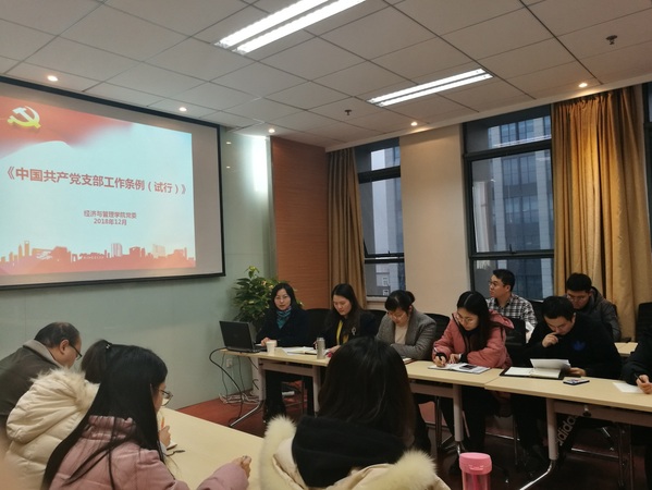 12月25日,经济与管理学院学生党支部书记培训在学院党员活动室举行,学院党委书记焦宏图、党委副书记涂志宏、组织员袁颖、全体辅导员及全体学生党支部书记参与了培训活动。