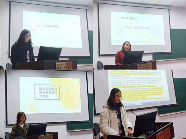 为了助力文强学子塑造价值,激发个性,拓宽国际视野,沈洋在寒假前布置了“认识自我、认识专业、认识世界”的提升计划,并于3月7日开展成果汇报展。同学们按照专业发展方向划分为四个兴趣小组,分别对专业研究项目、个人技能提升、对世界的新认识三个模块进行总结汇报。汇报结束后,几位老师分别对同学们的表现予以点评。朱建军指出:“希望文强班的同学们能够以高标准严格要求自己,在学术科研、专业竞赛、文体特长等方面协同发展,早日成为具有创新精神和领导潜质的社会栋梁。”邓晶在发言中提到:“经管学院始终将‘培养素质过硬、具有国际视野和创新精神的经济与管理人才’作为第一使命,此次文强班主题教育活动形式新颖、内容丰富,同学们要在未来的大学生涯中抓住机遇,迎接挑战,实现自己的人生价值。”