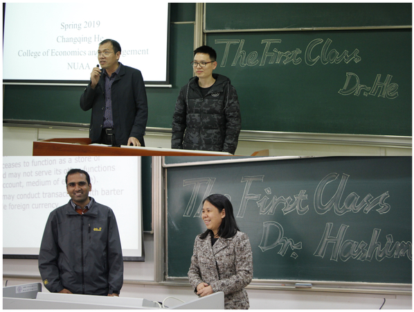 4月3日,对于经济与管理学院90后何昌清老师和外籍教师HASHIM ZAMEER来说,是教师职业生涯中难忘的一天。这一天,经管学院党委书记焦宏图、副院长王英、邓晶分别将两位老师送上了英文课程《工商管理导论》、《宏观经济学》的讲台。