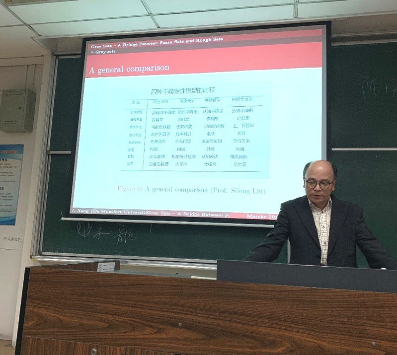 2019年3月18日晚上,英国得蒙福德(De Montfort)大学杨英杰教授受永利官网灰色系统研究所邀请,在将军路校区10302室作了题为“灰色模型和数据分析”的讲座。经管学院谢乃明教授、方志耕教授等教师及部分硕、博研究生现场聆听了杨英杰教授的报告,本次学术报告由谢乃明老师主持。