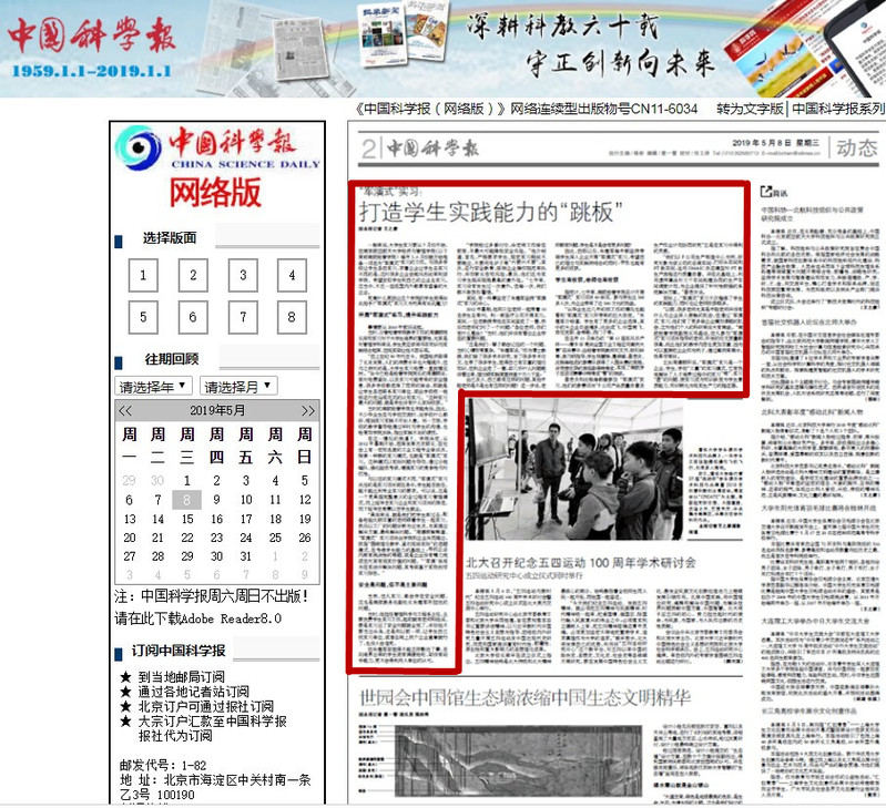 5月8日,《中国科学报》二版头条报道永利官网“军演式”实习工作,现转发全文: