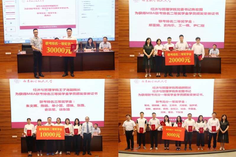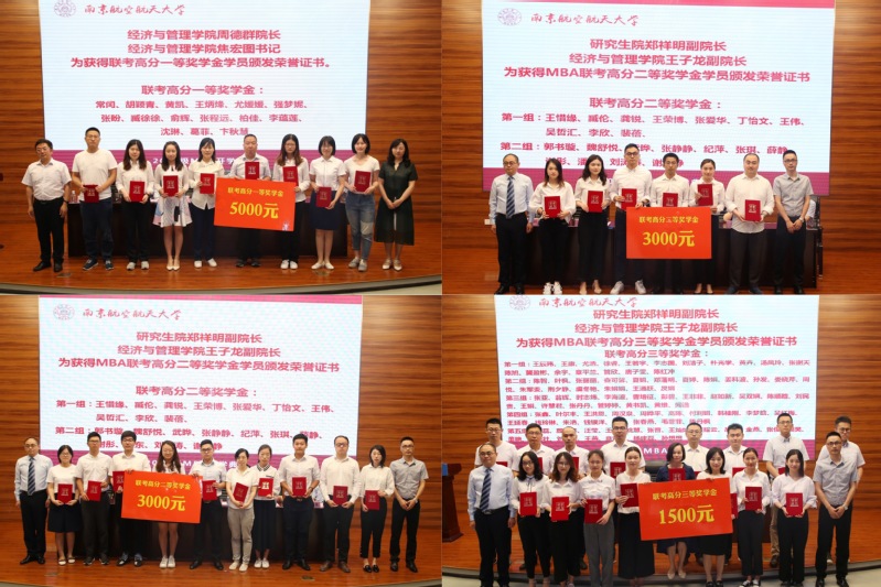 yl23455永利官网研究生院副院长郑祥明宣读获得2019级MBA奖学金名单,本次奖学金项目设置联考排名奖学金和联考高分奖学金。郑祥明、周德群、焦宏图、王子龙等分别为获奖同学颁奖。