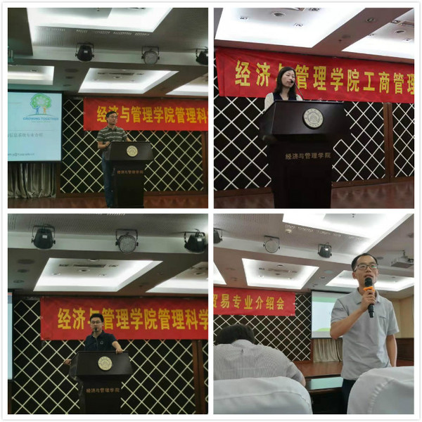 新生见面会当天下午,学院本科新生专业介绍会在A0305教室举行。学院邀请了管理科学与工程系、工商管理系、经济与贸易系的教师们分别对各系进行了详细的介绍。
