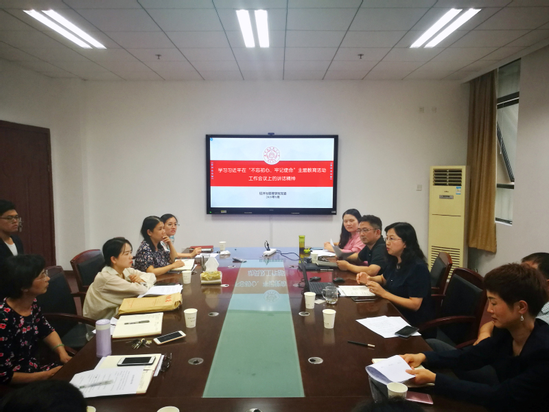 9月25日,经济与管理学院召开理论学习中心组(扩大)学习会暨“不忘初心、牢记使命”主题教育集中学习会,学院领导、党委委员、系主任、教工党支部书记和支部委员、辅导员参加了集中学习。会议由院党委书记焦宏图主持。