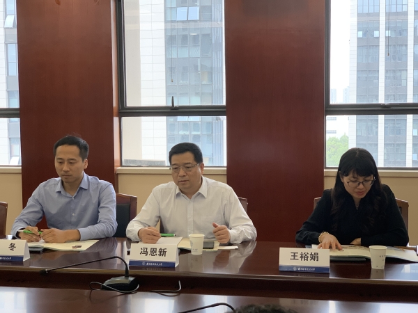 焦宏图对冯恩新一行的到来表示了热烈欢迎,并向其介绍了学院的历史发展、学术科研、学科设置、人才培养等基本情况。邓晶、朱建军分别围绕金融学科发展和实习实践基地建设向企业介绍了学院优势,重点推介了“项目式实习”的学生实习实践创新模式。