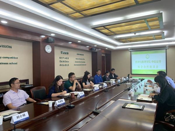 9月26日,中信证券江苏省分公司总经理冯恩新一行来到经管学院洽谈校企合作,公司人事部经理王裕娟、营业部经理李冬以及经管学院院长周德群、党委书记焦宏图、教务处副处长朱建军、副院长邓晶、党委副书记涂志宏、金融专业负责人段进东、经济系党支部书记徐菱涓、辅导员代表等参加了本次洽谈会。