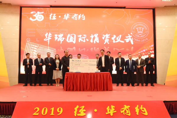 华瑞国际捐资以及华瑞商学院成立两大仪式揭开了看今朝的序幕。仪式一:为了进一步推动强强联合,经管与华瑞共同合作,成立华瑞商学院。由华瑞国际集团创始人康宜华先生、经济与管理学院院长周德群教授共同为华瑞商学院揭牌。华瑞商学院未来将面向实战型精英人才开展专业化培训,同时进一步开发学院高级经理人发展课程,实现校企共同成长。仪式二:华瑞国际捐资仪式。华瑞国际历来重视回报社会,多年来做了大量的捐赠助学等公益事业,在联谊活动中,华瑞国际为经管捐资100万,用于学院奖助学金、奖教金、学科建设及科学研究,支持经管学院的建设与发展。80级校友、华瑞国际集团创始人康宜华先生、yl23455永利官网党委副书记、教育发展基金会理事长陶勇教授共同签署捐赠协议。两大仪式共同将现场气氛推向了新的高潮。
