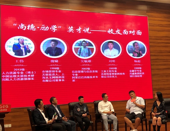 10月10日下午,经济与管理学院“尚德•励学”英才说校友面对面活动在将军路校区一号楼四楼报告厅举行。我校2013级人力资源专业方向博士生校友、中国运载火箭技术研究院人力资源部部长王伟,1998级市场营销专业校友、上海从玉网络科技有限公司董事长魏啸,2002级信息管理与信息工程专业校友、阿里巴巴高级技术专家吴毓雄,2003级工业工程专业校友、苏州牧星智能科技有限公司创始人刘明,2008级金融学专业校友、高盛集团投资银行部经理畅超应邀来为永利官网师生授课。经济与管理学院党委书记焦宏图、副书记涂志宏、副院长邓晶及400余名本科生参加了本次活动。活动由辅导员康冲主持。