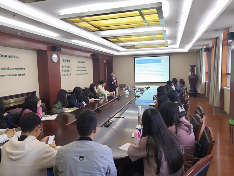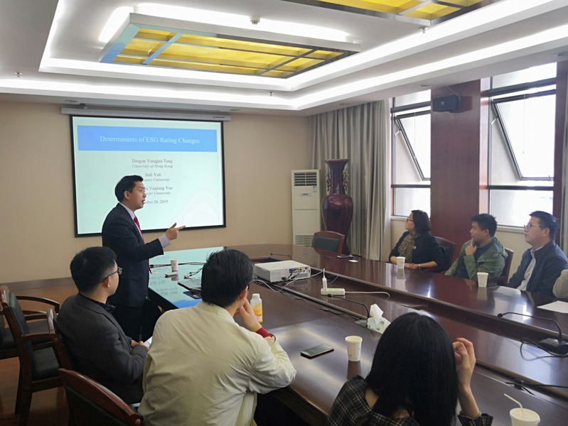 10月28日上午,香港大学汤勇军教授应学院金融研究所邀请,在南航将军路校区经济与管理学院604作了题为“环境、社会及治理(ESG)评级变化的决定性因素”的学术报告。经济与管理学院副院长王群伟、金融学科专业负责人教授段进东、经济系主任袁潮清、副主任徐菱涓、院长助理陆珩瑱、王建立、苏飞、魏悦羚等教师及数十名硕、博研究生现场聆听了汤勇军的报告。本次报告由王群伟主持。