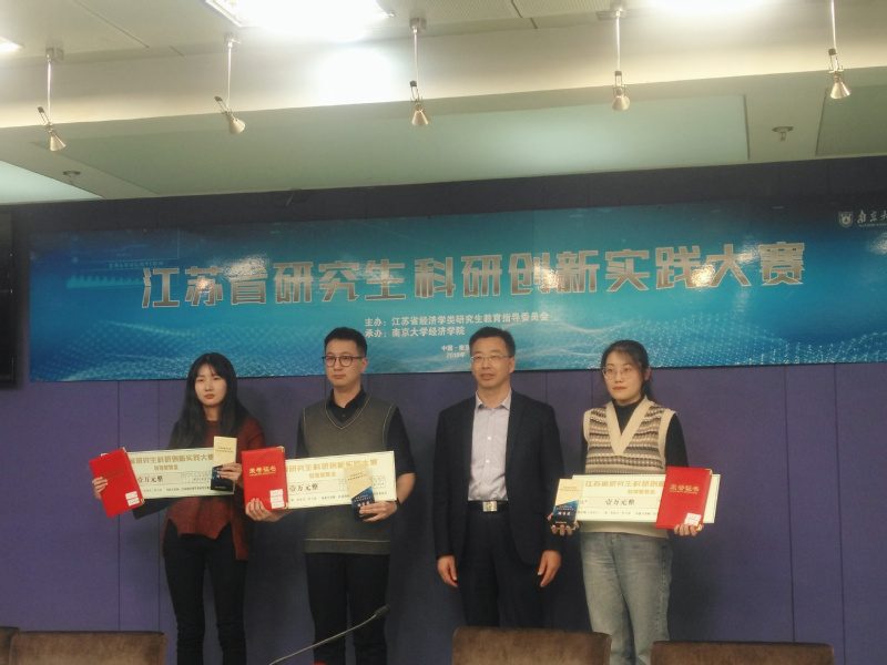 12月8日,江苏省研究生科研创新实践大赛决赛在南京大学顺利进行,共有来自19所全国高校的22支队伍参加汇报,经济与管理学院研究生张亚楠、成程、王义忠、杭叶组成的Wgroup(团队名)打败了诸多强手,荣膺特等奖,获得奖金10000元。
