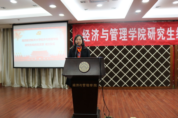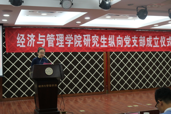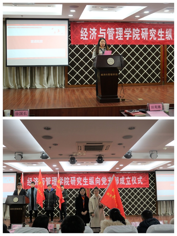 1月9日下午,经济与管理学院研究生纵向党支部成立仪式在院楼A0305报告厅顺利举行。学院党委书记焦宏图、党委副书记涂志宏、学生党总支全体成员以及全体研究生党员出席了本次成立仪式。