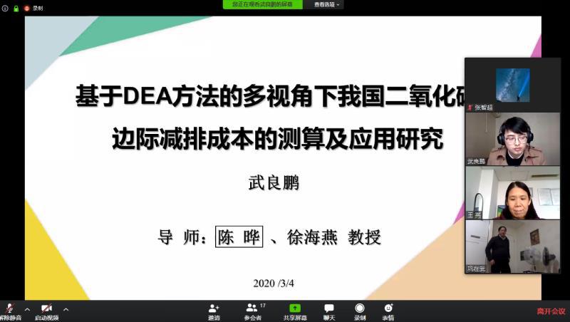 由于疫情影响,学校延期开学,为了帮助学生按时毕业,经济与管理学院在“过程不简化、标准不降低”的宗旨下,及时推动答辩新形式的采用,保证学生顺利完成学位论文答辩工作。3月4日,学院博士生武良鹏、王玲俊通过在线会议的方式参加远程毕业答辩,成为学院在疫情期间首批顺利通过博士学位论文答辩的成功案例。