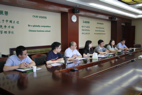 首先,周德群代表经管学院对张卓处长一行的来访表示热烈欢迎,近年来,学院十分重视国际合作工作,在方式和方法上不断尝试和探索,感谢国际合作处领导来学院指导工作,希望能多介绍一些学校关于国际合作工作的总体规划和设想,为学院今后的国际合作交流工作指明方向。