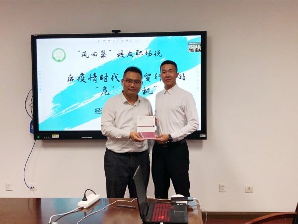 6月19日下午,经济与管理学院开展“‘凤回巢’校友职场说——后疫情时代,外贸行业的‘危’与‘机’”交流分享会。学院党委副书记涂志宏,我校2003届校友、苏美达股份有限公司董事会办公室主任杨勇,我校2005届校友、苏美达国际技术贸易有限公司西南机电事业部副部长曹可军,我校2005届校友、苏美达国际技术贸易有限公司东南机电事业部 机床部经理储光,我校2010届校友、苏美达国际技术贸易有限公司第二机电事业部业务助理杨银花以及在校学生代表现场参加了本次活动,另有百余名学生通过腾讯会议平台同步参与,此次活动由学院辅导员胡心雨主持。