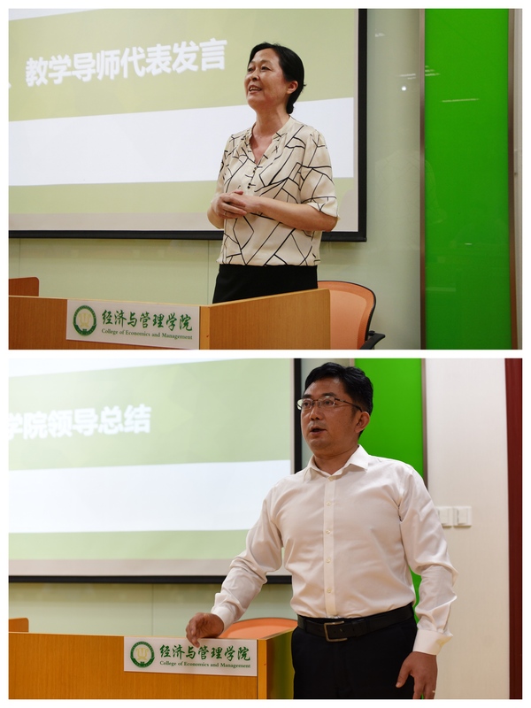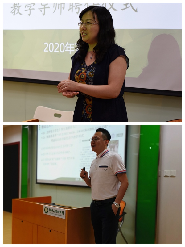 随后,教学导师徐海燕分析了教学导师在责任感、教学经验及教学资源等方面的优势,呼吁资深教师能够无私分享,帮助青年教师少走弯路;同时也表示青年教师在知识面和科研能力方面存在优势,应该发挥特长,与资深教师联合打造线上线下混合教学模式,双方携手共创一个有经管特色,符合学生及教师成长需求的教学大环境。