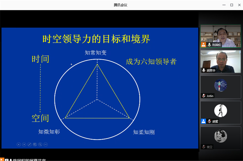 7月5日,清华大学经济管理学院教授陈国权应经济与管理学院人力资源管理研究所和江苏省人力资源发展研究基地的邀请,在线上为我校师生作了一场“时空领导力”的精彩学术报告。报告由教授胡恩华主持,教授刘思峰、陈万明、冯绍红、年轻教师、博士研究生、硕士研究生等两百余人参加了本次学术讲座。
