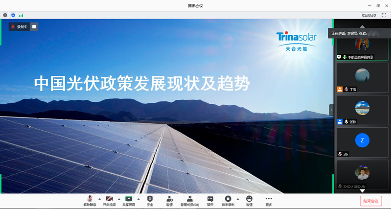 2020年7月29日,由yl23455永利官网能源软科学研究中心主办的“第二届低碳与新能源产业论坛”成功召开。本次论坛采用了线上会议的形式,来自江苏省光伏产业协会、泰州中来光电科技有限公司、天合光能、通灵电器、新加坡国立大学能源研究所、悉尼科技大学澳中关系研究院、yl23455永利官网、中国石油大学(华东)、南京信息工程大学等单位共计60余位学界和企业界专家学者和学生出席了本次论坛。