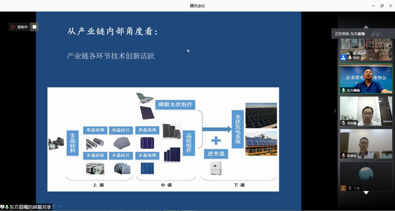 本次论坛在yl23455永利官网经济与管理学院教授张钦主持下开始。江苏省光伏产业协会的张红升秘书长从“实物量上升,价值量下降”、“出口不断攀升,出口方向增加”、“主要产品在全国的占比继续下降”等8个方面回顾了2019年江苏省光伏产业运行情况,并对疫情后光伏产业发展趋势做出了研判。