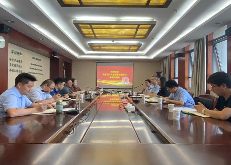 8月24日上午,南京理工大学经济管理学院韩晓梅院长、臧强书记、王玉东副院长、游鹏副书记一行来永利官网走访调研。院长周德群、党委副书记涂志宏、副院长邓晶、王子龙、王群伟、谢乃明陪同调研。