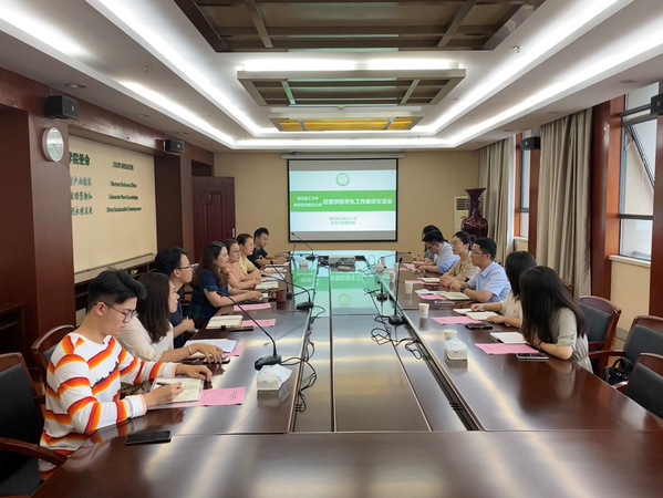 9月2日下午,南京理工大学经济与管理学院党委副书记游鹏、学工办主任孔小敏、团委书记虞春燕、各年级辅导员一行来永利官网交流座谈。学院党委副书记涂志宏、团委书记刘小杨与各年级辅导员陪同座谈。