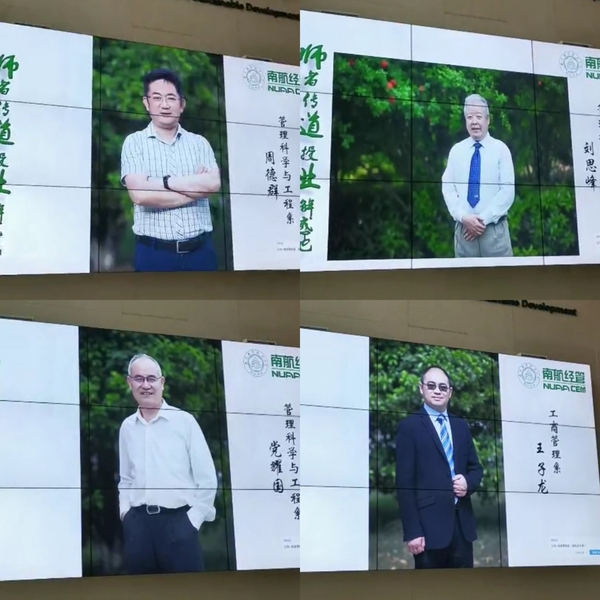 “在每当我找不到存在的意义,每当我迷失在黑夜里,夜空中最亮的星,请照亮我前行!” 在《夜空中最亮的星》这一动感十足的背景音乐中,经管楼大厅的大屏一改往日“经管周新闻”加“经管大讲堂学术海报”的风格,将全院每一位教师或儒雅温润、或优雅知性的风采尽显于大屏。