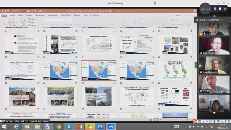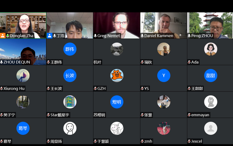 9月24号上午,美国加州大学伯克利分校教授Daniel M. Kammen和威斯康星大学麦迪逊分校教授Gregory F. Nemet受永利官网能源与环境经济研究所邀请,在腾讯会议(会议ID:764 011 583)作精彩讲座。经济与管理学院教授周德群、王群伟、查冬兰及其他教师代表、硕博研究生认真听取了Kammen和Nemet的报告,本次学术报告由查冬兰主持。