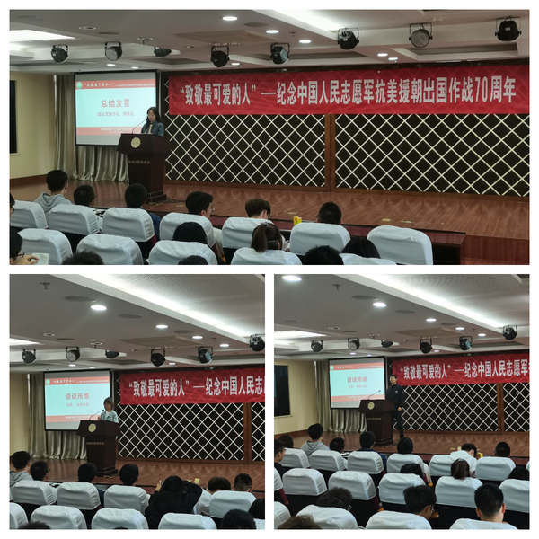 10月23日上午10时,经济与管理学院2020级团总支“致敬最可爱的人”——纪念中国人民志愿军抗美援朝出国作战70周年素养公开课于A0305顺利举办。活动会场内座无虚席,气氛庄严。