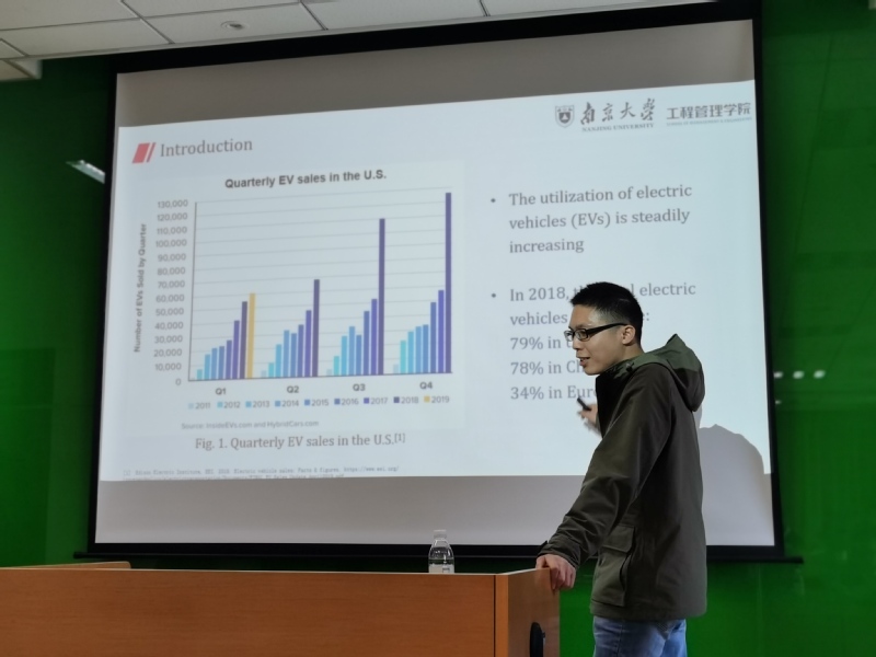 随后,罗志兴作了题为“The Electric Vehicle Routing Problem with Piecewise Linear Charging Function”的报告。报告指出了未来使用电动汽车送货的前景,并基于充电时间的线性分段函数研究电动汽车路径规划问题。研究基于全新的占优策略设计并实现分支定价精确算法,并通过算例实验对比验证了新方法对现有相关方法计算效率与求解质量的有效提升。