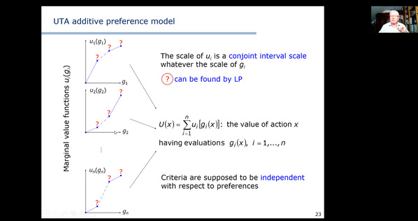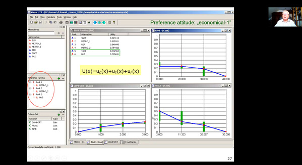 在本次短期课程中,Roman Słowiński具体授课内容包括:(1)多准则辅助决策的基本概念;(2)用(稳健)有序回归构造的加值函数进行多准则排序:UTA、UTA^GMS和GRIP方法;(3)利用排序关系进行多准则排序:ELECTREⅢ/Ⅳ法;(4)基于优势度的粗糙集多准则辅助决策方法。