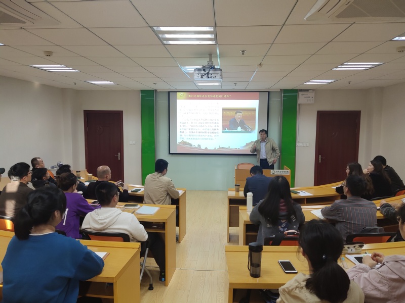 第一堂党课由我校十九大精神宣讲团成员、副院长邓晶主讲,他为南京市晋江商会党支部党员们作了题为“国内国际双循环和大国风范”的主题党课,重点解读了十九届五中全会报告精神。