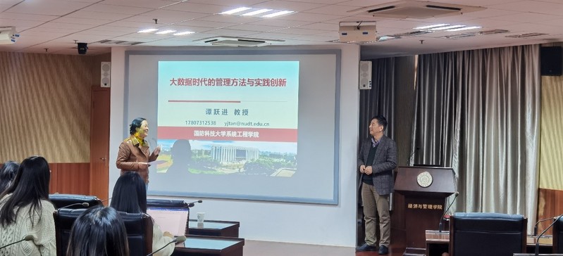 11月25日下午,国防科技大学教授谭跃进受学院智能决策与风险分析研究所邀请,在南航将军路校区经管辅楼A0405作了题为“大数据时代的管理方法与实践创新”的讲座。永利官网教授徐海燕等教师及部分硕、博研究生现场聆听了谭跃进的报告分享,本次学术报告由徐海燕主持。