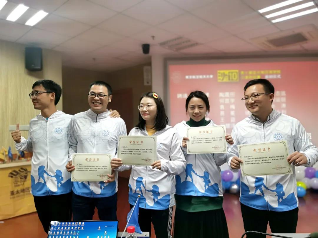 ▲嘉宾陆杨依次为沙10队员易冕、陈友婷、徐阳、周永利颁发证书