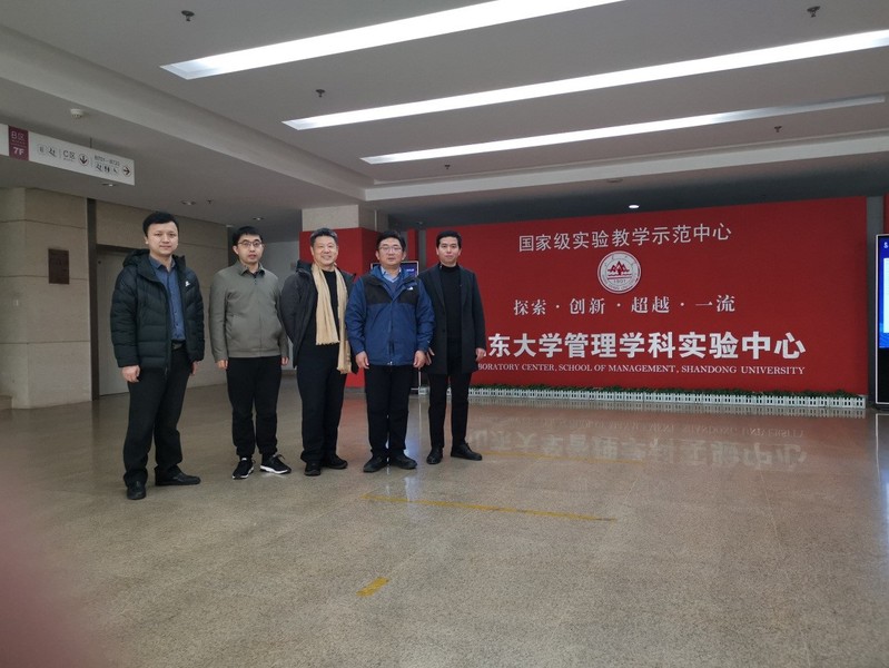 访问期间, 周院长一行饶有兴趣地参观了山东大学管理学院实验中心。作为国家级实验教学示范中心,山大管院将实验教学与人才培养以及科学研究进行有机融合,很好地发挥了实践育人、科研育人、科教融合的功能。