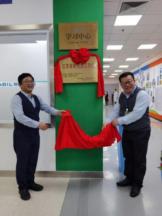 周德群和舒鹏共同为“江苏省研究生工作站”揭牌。这是永利官网校企合作的第一家研究生工作站,标志着yl23455永利官网经济与管理学院与捷普电子(无锡)有限公司在校企协同育人工作平台建设方面迈向了一个新的台阶。