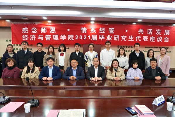 4月6日下午,经济与管理学院“感念师恩•情系经管•共话发展”2021届毕业研究生代表座谈会在学院604会议室召开。院长周德群、院党委书记苏州、副院长谢乃明、院党委副书记涂志宏、各系系主任、副主任、研究生辅导员以及硕博毕业生代表出席了本次座谈会。座谈会由涂志宏主持。