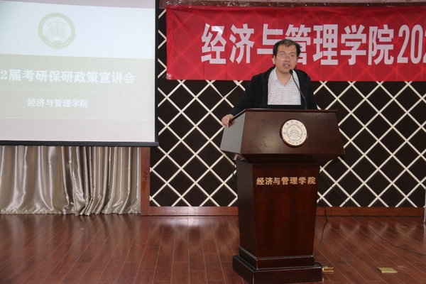 为帮助学生了解永利官网研究生招生政策,合理规划考研、保研目标,提升学院生源质量,5月20日,经济与管理学院2022届考研、保研政策宣讲会于经管楼A0305成功举办。学院副院长邓晶、谢乃明,管工系系主任米传民、工商系系主任谢嗣胜、经济学副主任王建立、年级辅导员及百余名2018级学生参加了本次活动。