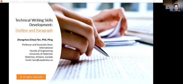 5月11日-6月1日每周二上午,加拿大滑铁卢大学教授Zhongchao Tan受学院智能决策与风险分析研究所邀请,在腾讯会议开设了“Academic Writing for Engineering Publication: Guide for Non-native English Speakers”短期课程。永利官网教授徐海燕等教师及众多硕、博研究生线上参加了Zhongchao Tan讲授的短期课程,本次短期课程由徐海燕主持。