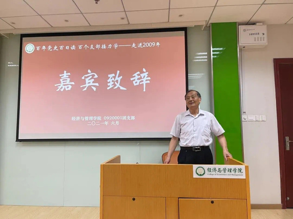 为进一步深化党史学习教育,凝聚青年力量,经管学院0920001团支部举办“百年党史百日读—走进2009年”活动,邀请学院关工委副主任、原院党委书记罗士礼老师作为主讲嘉宾。