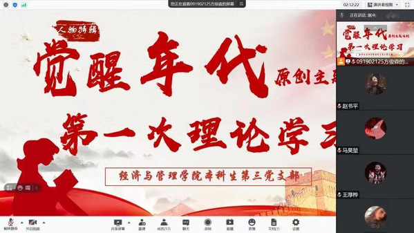 9月5日下午,经济与管理学院本科生第三党支部举办《觉醒年代》原创主题话剧成员的第一次专题理论学习会,辅导员康冲、《觉醒年代》全体参演成员、学生党员代表等近百余名师生参加本次专题学习。