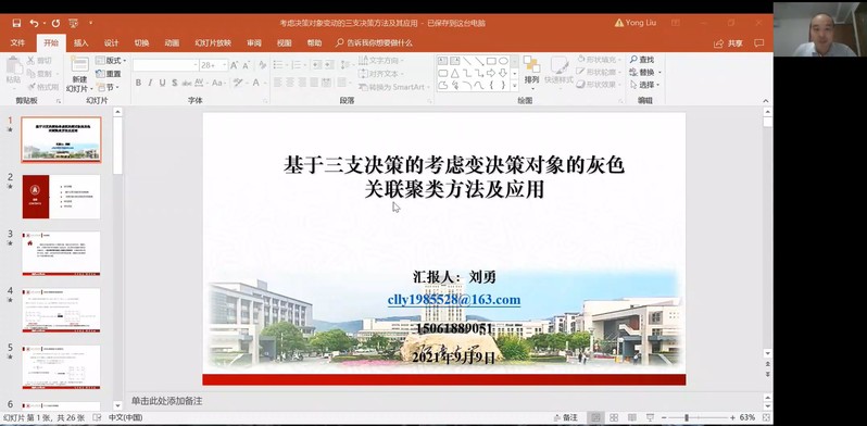 9月9日晚上,江南大学副教授刘勇受学院智能决策与风险分析研究所邀请,在腾讯会议作题为“考虑决策对象变动的三支决策方法及其应用”的讲座。永利官网教授徐海燕等教师及部分硕、博研究生线上参加了刘勇的报告分享,本次学术报告由徐海燕主持。