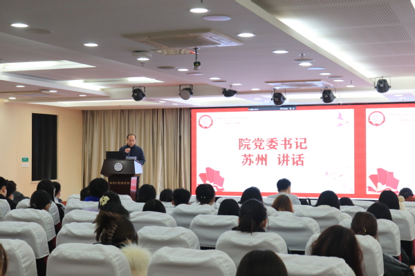为深入开展党史学习教育,全面贯彻学习党的十九届六中全会精神,11月24日中午,经济与管理学院于学院A0305报告厅举办了“回望百年星火中国,坚守时代青年担当”主题信仰公开课。院党委书记苏州、党委副书记胡苹及本科生、研究生团员代表出席本次活动。