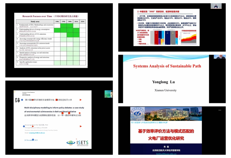 本次研讨会分为上半场和下半场,上半场大会报告由yl23455永利官网经济与管理学院院长周德群教授、中国石油大学(华东)经济管理学院院长周鹏教授和中国石油大学(华东)经济管理学院赵晓丽教授主持。新加坡国立大学B.W.Ang教授作题为“IDA及其应用:近期发展,未来展望”的学术报告,全面系统地回顾了IDA方法的研究和利用情况,并提出未来可以开展的研究方向。中国石油国家高端智库研究中心吕建中教授作题为“‘双碳’背景下的能源转型与能源安全”的学术报告,深入解读了能源转型的格局和能源安全的形势,分析了国际油气市场的变化趋势,并提出了一系列值得重视的问题。厦门大学吕永龙教授作题为“可持续发展路径的系统分析”的学术报告,从多维度、多视角探究了可持续发展路径,体现了系统思维在可持续发展问题研究中的适用性。悉尼科技大学施训鹏教授作题为“运用跨学科模型为政策辩论提供信息:以一带一路的环境争议为例”的学术报告,指出一带一路导致环境恶化没有实证证据,通过能源贸易和区域合作,一带一路有能力促进环境的改善。北京航空航天大学朱磊教授作题为“基于效率评价方法与模式匹配的火电厂运营优化的研究”的学术报告,针对火电厂运营中面临的现实问题,创新性地构建了能源效率评价方法,为发电企业能源效率的提升提供了有效指导。