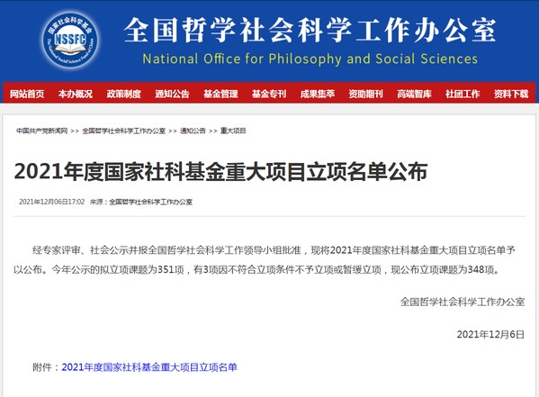 作为国家哲学社会科学领域层次最高、权威性最强、资助力度最大的纵向科研项目,国家社科基金重大项目始终以我国经济社会发展中的重大理论问题和热点问题为研究对象,在促进中国特色哲学社会科学学科体系、学术体系、话语体系建设的同时,着力推出具有重大学术创新价值和文化传承意义的标志性研究成果,为党和国家的工作大局与治国理政服务。