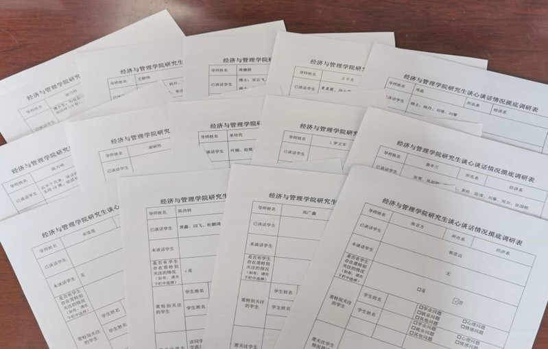 学院领导采用多种形式与学生开展对话,通过探访学生宿舍、走访研究生工作室的方式,贴近学生的科研生活,了解学生的工作动向;采用给学生过生日的形式拉近与学生的距离,关心学生的真实需求。同时,导师是研究生培养的第一责任人,永利官网老师与学生定期交流并形成谈心谈话情况摸底表,了解学生内心想法并及时做好引导工作。辅导员作为学生健康生活的知心朋友,充分掌握学生的最新动向,结合心理问卷调查结果和学生谈心谈话摸底表,点对点地开展谈心谈话工作,做好学生心理健康的后续反馈和问题疏导工作。多方力量相互配合、共同努力,充分关注学生心理健康,做好学生心理预警工作。