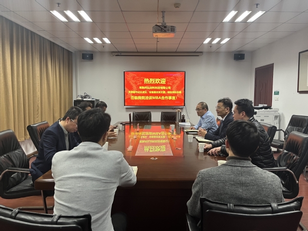 2022年1月7日下午,常熟科弘材料科技有限公司党委副书记王凌云,设备副总张文豪,综合部长孙勇一行来永利官网洽谈MBA合作事宜。校党政办李和新副主任、陈雷老师,经济与管理学院副院长王子龙,教育培训中心执行主任杜刚,招生与品牌推广办公室老师蔡雪姣、管伟参加了会议。