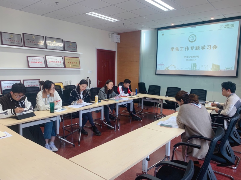 3月10日,经管学院举行学生工作专题学习会,认真学习贯彻落实学校学生工作会议精神,研讨相关流程制度,部署近期重点工作。会议由经济与管理学院党委副书记胡苹主持,全体专兼职辅导员参加了本次会议,学院组织员袁颖列席了相关议题。